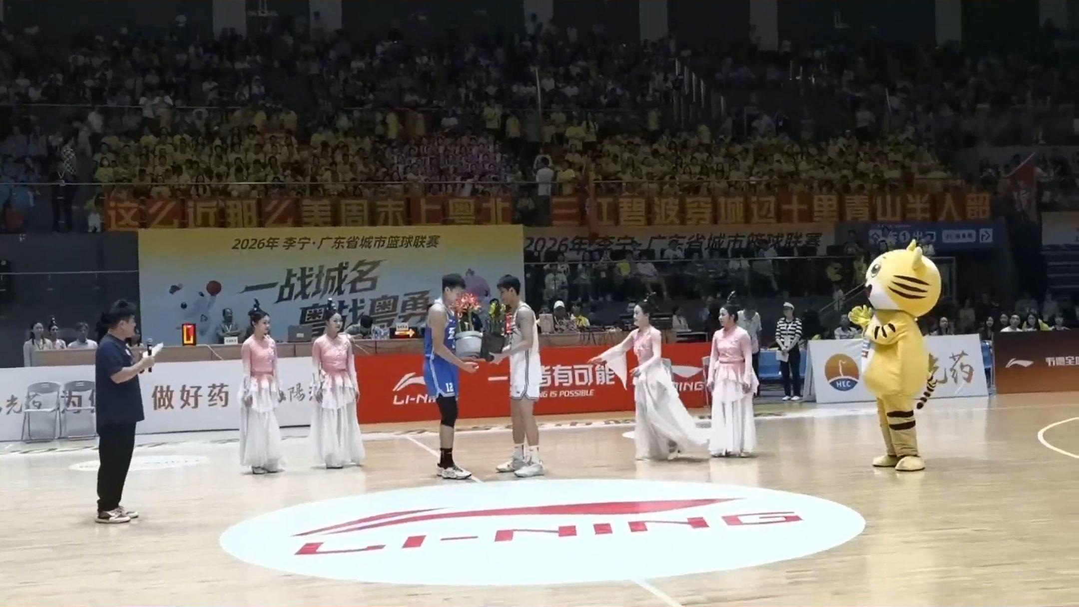 中场环节,韶关队东莞队互赠手信