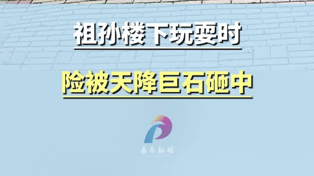 祖孙楼下玩耍时险被天降巨石砸中