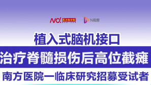 植入式脑机接口治疗脊髓损伤后高位截瘫,南方医院招募受试者