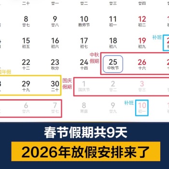 春节假期共9天!2026年法定节假日安排发布