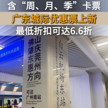 最低6.6折!广东城际优惠票上新,含“周、月、季”卡票