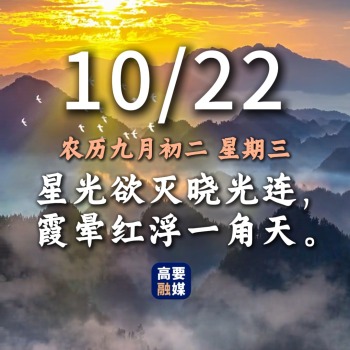 今天是10月22日,星光欲灭晓光连,霞晕红浮一角天。