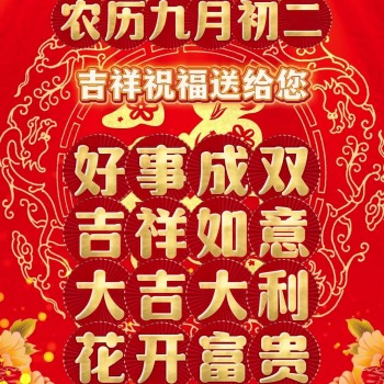 农历九月初二,吉祥祝福送给您,好事成双,吉祥如意