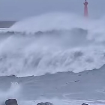 受台风影响,台湾花莲县马太鞍溪水位暴涨,七千余人已撤离