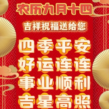 农历九月十四,吉祥祝福送给您,四季平安,好运连连