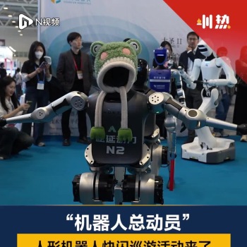 高交会上演“人形机器人总动员”,不少人跟随机器人队伍逛展