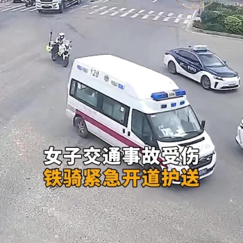 女子交通事故受伤 铁骑紧急开道护送