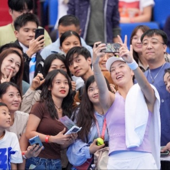 十五运会网球女单首轮王欣瑜轻松晋级,与球迷甜蜜互动