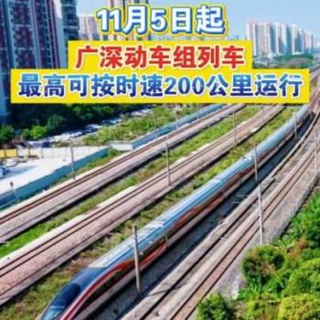 11月5日起,广深动车组列车最高可按时速200公里运行