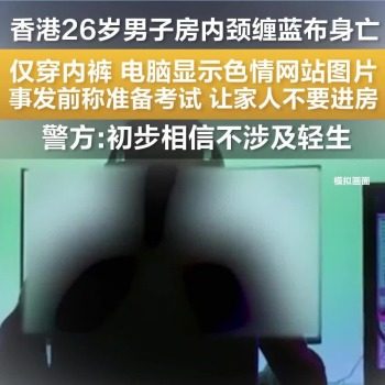 26岁男子颈缠蓝布身亡,仅穿内裤,电脑显示色情网站图片