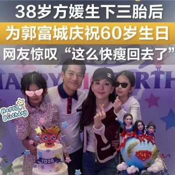 38岁方媛生下三胎后,为郭富城庆祝60岁生日